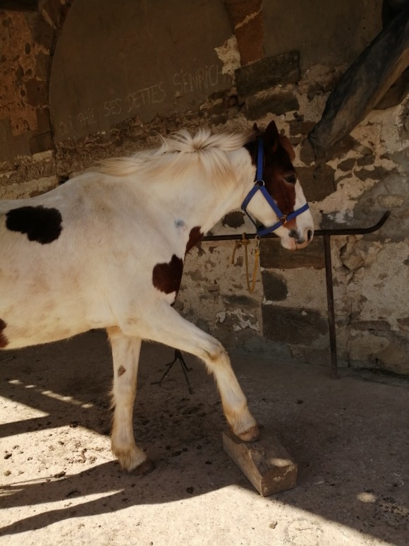 Sachez qu’au delà d’1m40, il prend sur lui pour les pansages … Merci d’ailleurs a Nono qui a été, comme a son habitude, un parfait cheval d’école, doux et affectueux. La où le stagiaire excelle, c’est pour apporter à mes petits muscles l’énergie nécessaire à m’occuper de vos bidoux. Si bien que, Véronique, c’est mort, je ne rentrerai pas dans du 36 à la fin du confinement !